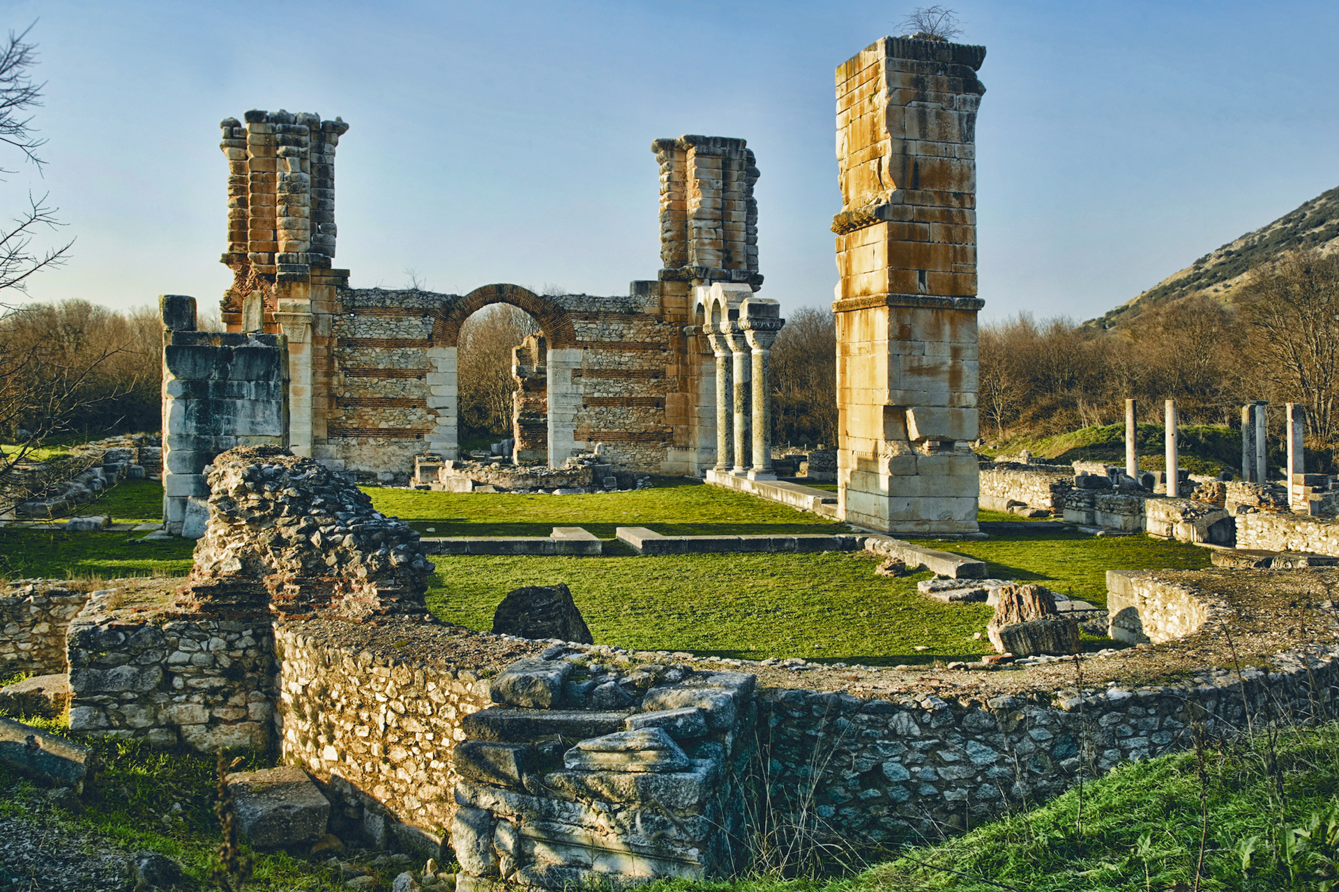Στον αρχαιολογικό χώρο των Φιλίππων αξίζει να επισκεφτείτε σίγουρα τα τείχη και την ακρόπολη στο εσωτερικό της οποίας υπάρχει πύργος υστεροβυζαντινών χρόνων. Ιδιαίτερα εντυπωσιακό είναι και το Αρχαίο Θέατρο των Φιλίππων, το οποίο χτίστηκε στα μέσα του 4ου αι. π.Χ., πιθανώς από τον Φίλιππο Β΄, και το καλοκαίρι φιλοξενεί παραστάσεις του Φεστιβάλ Φιλίππων. Μνημεία εξαιρετικού αρχαιολογικού και πολιτιστικού ενδιαφέροντος είναι ακόμη η αγορά με το μοναδικό ψηφιδωτό δάπεδο έκτασης 40 τ.μ., που αποτελούσε συγκρότημα δημόσιων κτηρίων το οποίο χτίστηκε από τον Μάρκο Αυρήλιο (161-180), η ρωμαϊκή δεξαμενή όπου, σύμφωνα με την παράδοση, οι Ρωμαίοι φυλάκισαν τον Απόστολο Παύλο, το Οκτάγωνο, ένα μεγάλο συγκρότημα με οκταγωνικό ναό, αφιερωμένο στον Απόστολο Παύλο και οι τρεις τρίκλιτες βασιλικές, οι οποίες χρονολογούνται από τον 5ο μέχρι τον 6ο αι.