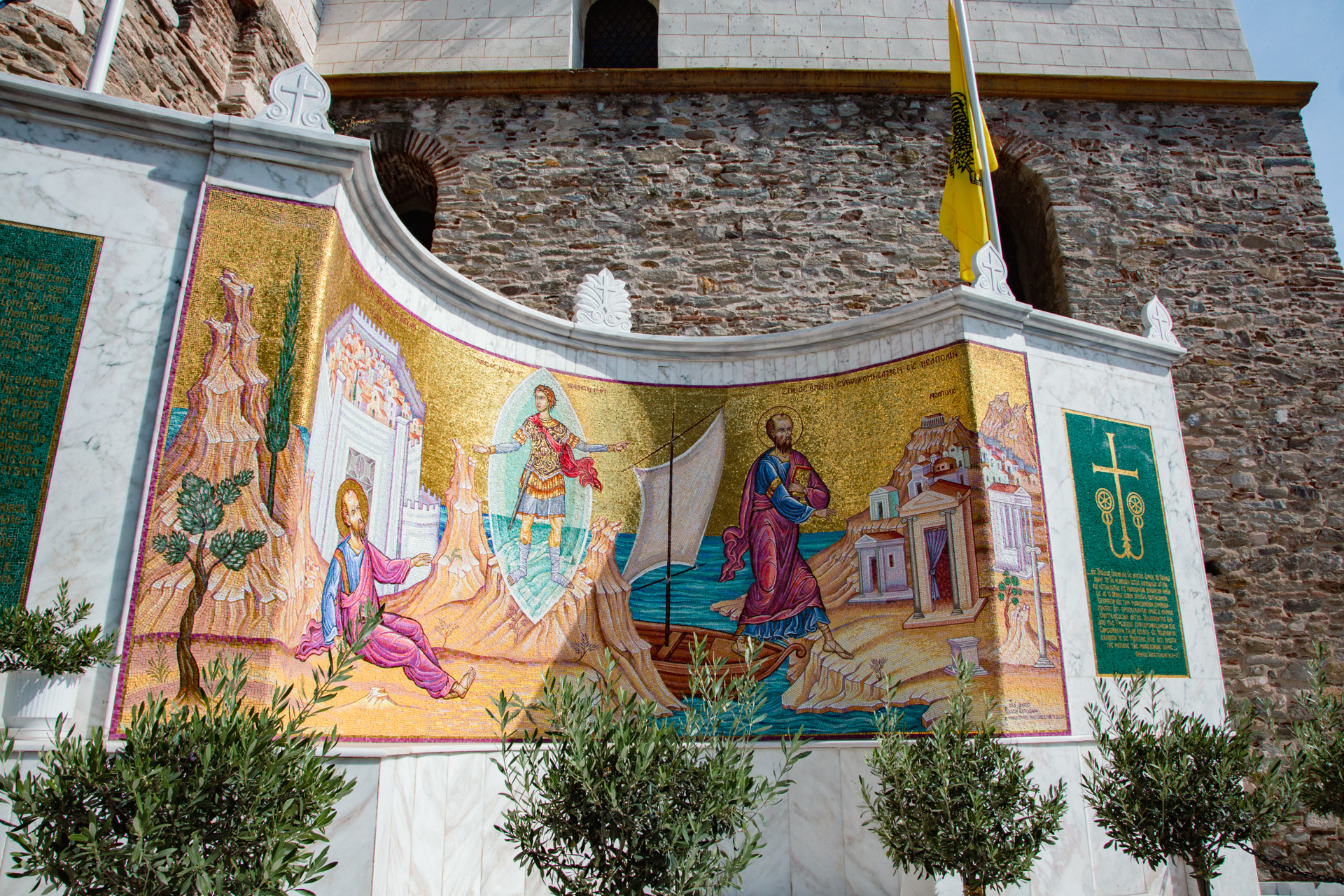 Το εν λόγω μνημείο είναι ένα ημικυκλικό περιστύλιο, κτισμένο από ξύλο και πέτρα, που ακολουθεί την σαμοθρακική παράδοση και διακοσμείται από τέσσερα μεγάλα ψηφιδωτά – αναπαραστάσεις του περάσματος του Αποστόλου από το νησί. Στο κέντρο, μεταφρασμένο σε πολλές γλώσσες, μπορεί κανείς να διαβάσει το χωρίο των Πράξεων (16, 9-12) που περιγράφει το πέρασμα αυτό.