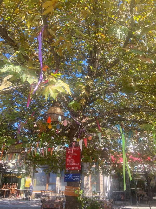 Μερικά μέτρα από την εκκλησία, βρίσκεται η γραφική πλατεία των Φερών. Εκεί θα δεις πολύ κόσμο, θα πιεις τον καφέ σου και, αν πεινάσεις, θα πας στης Λενιώς, για να φας γύρο, παραδοσιακό λουκάνικο ή αν είσαι βίγκαν ένα από τα καλύτερα χορτοφαγικά μπέργκερ, συνοδευόμενο με τις πιο νόστιμες, φρέσκες τηγανιτές πατάτες.